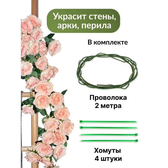 Цветы искуственные Розы каскадные (37 штук, 120 см, цветок 10 см) розовый 265454