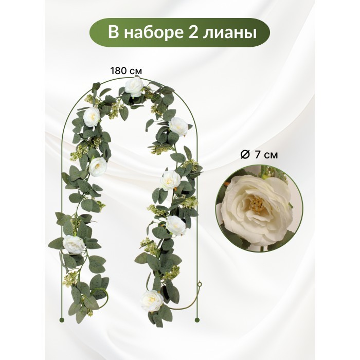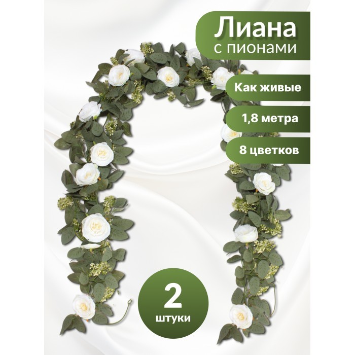 Цветы искуственные Пионы Лиана (8 цветов, 180 см, 2 ветки) белый 265912