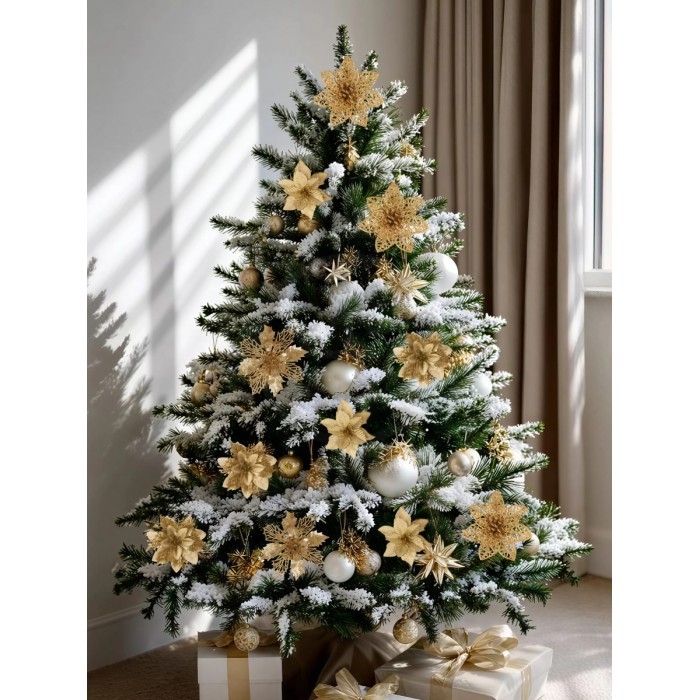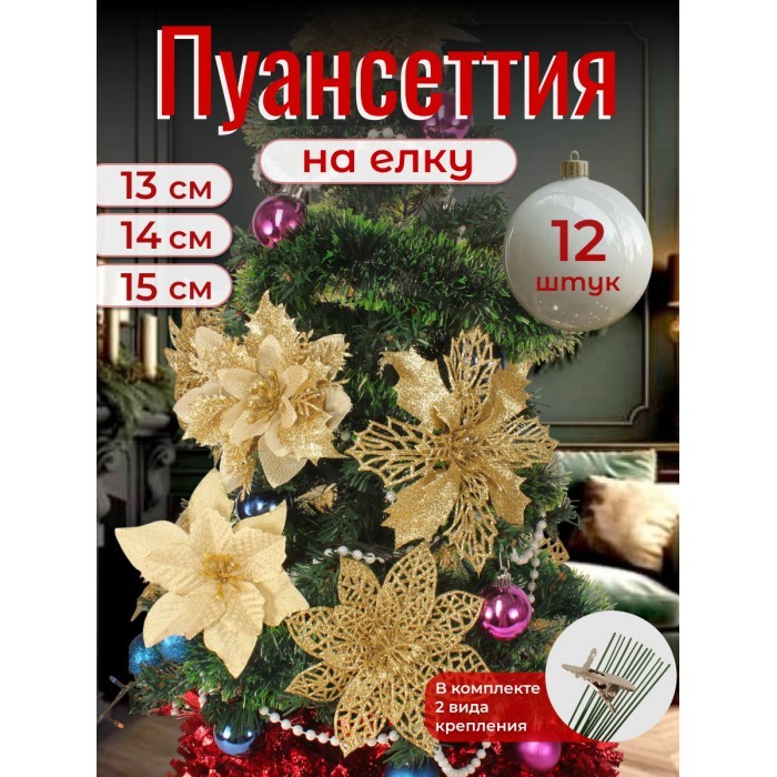 Набор Цветы Пуансеттия (12 штук - 13/14/15 см + проволока+зажимы) золото 266218