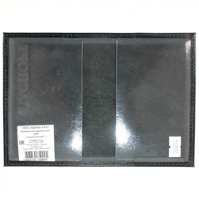 Обложка для паспорта Croco-П-400 натуральная кожа черный матовый (3) 206894