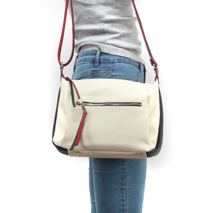 Сумка женская искусственная кожа ADEL-279/ММ. 1отдел+плеч/рем. беж/син/красн флотер SALE 259619