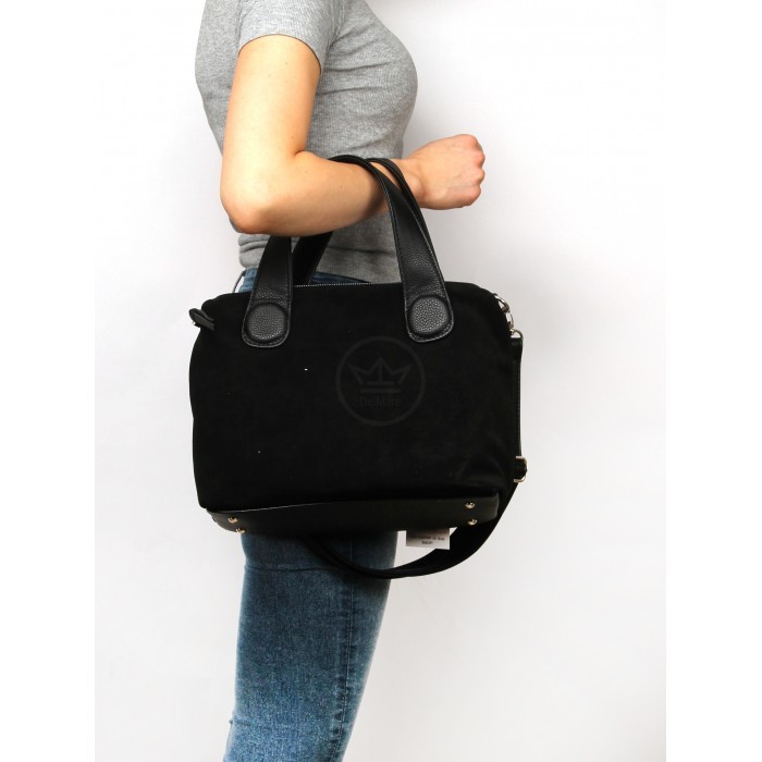 Сумка женская натуральная замша ADEL-311/2в (отделка ИСК/КОЖА), 2 отд/плеч рем, черный SALE 261143